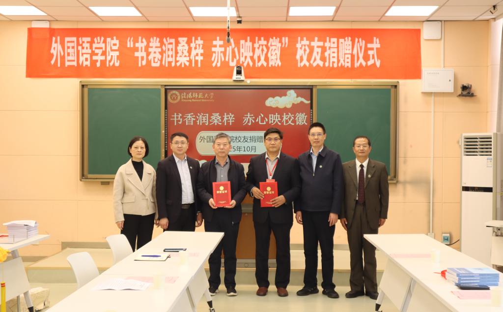 同日下午,学院于人文楼5-04举办“书卷润桑梓,赤心映校徽”校友实物捐赠仪式。校资产管理处副处长周刚、校图书馆副馆长汪明霞及学院领导出席。87级校友赵开中、89级校友刘向阳分别捐赠锦旗及个人著作,用行动彰显对母校的深情,以书香传递赤子情怀,为学院发展注入温暖力量。