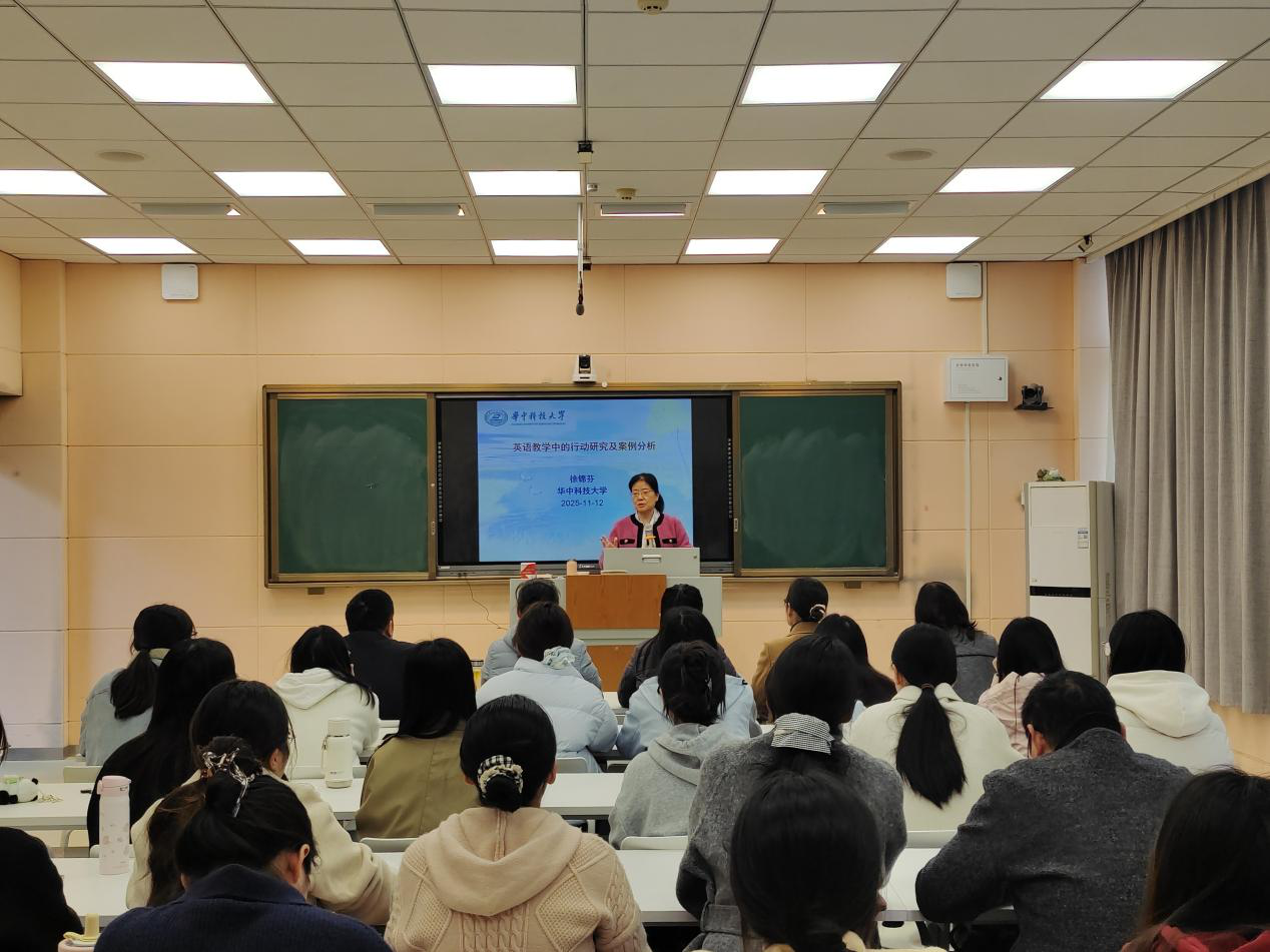 2025年11月12日下午,应外国语学院邀请,华中师范大学徐锦芬教授在人文楼603教室为我院师生作了题为“外语教学中的行动研究:理论与实施路径”的学术讲座。外国语学院青年教师及部分研究生参加了讲座。讲座由外国语学院副院长章彩云教授主持。
