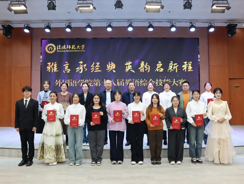 11月27日晚,外国语学院在人文楼五育大讲堂举办“雅言承经典英韵启新程”英语综合技能大赛决赛。学院党委副书记高彦伟,副院长余永锋出席比赛,教师赵建军、周雪、郭华、程欣瑜、魏旭担任比赛评委,学院师生代表200余人共同观看此次比赛。