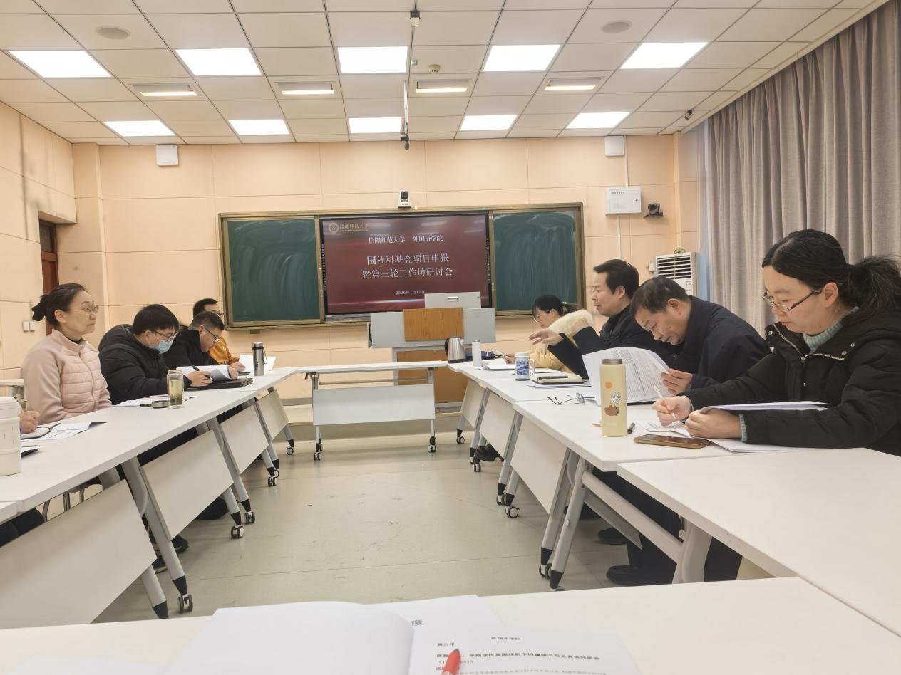 2026年1月17日下午,信阳师范大学外国语学院“2026年国家社科基金项目申报专题学术工作坊”第三次论坛在人文楼603会议室举行。论坛举行之前,工作坊收集到本院23份项目论证书,根据项目论证书质量给予评分,并书面通知修改具体事项。