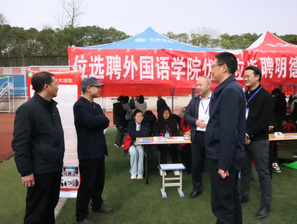 3月29日,河南省毕业生就业市场豫南分市场暨信阳师范大学2025届毕业生春季双向选择洽谈会在我校西操场隆重举行。外国语学院党委书记陈铭,党委副书记高彦伟,副院长余永锋,翻译中心主任曹万忠,就业秘书赵鹏举及2025届全体毕业生参加了双选会。