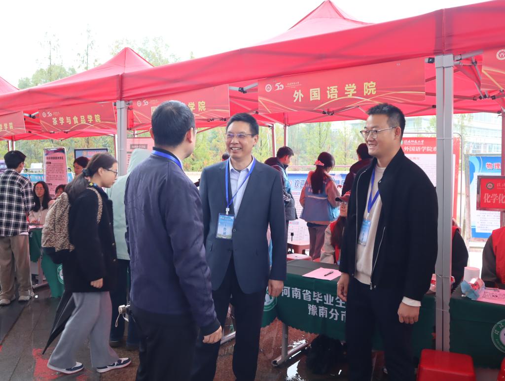 11月7日,河南省毕业生就业市场豫南分市场暨信阳师范大学2026届毕业生秋季双向选择洽谈会在我校体育馆隆重举行。外国语学院党委书记陈铭、就业秘书赵鹏举及2026届全体毕业生参加了双选会。